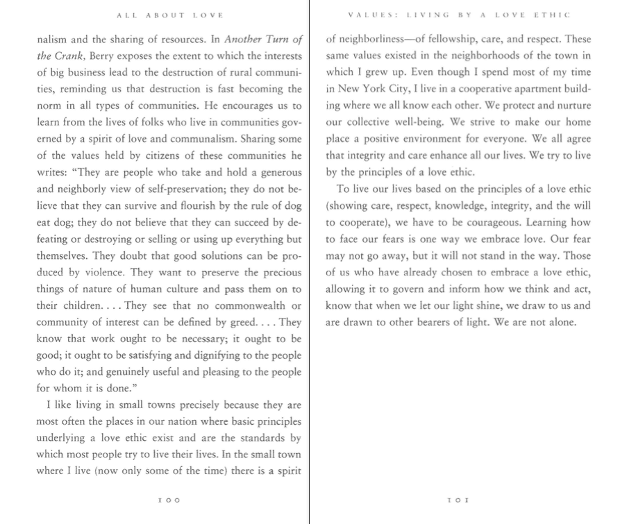 I’m turning to readings on love because I still need instruction, and I need to remember what a life of love could be. I don’t mean some flimsy, sheltered, easy vibe — bell hooks reminds us that love is not feeling noun, but feeling verb, love is an action and an orientation, a structure in which hope can exist alongside all the evidence against it. Maybe you need this, too.
