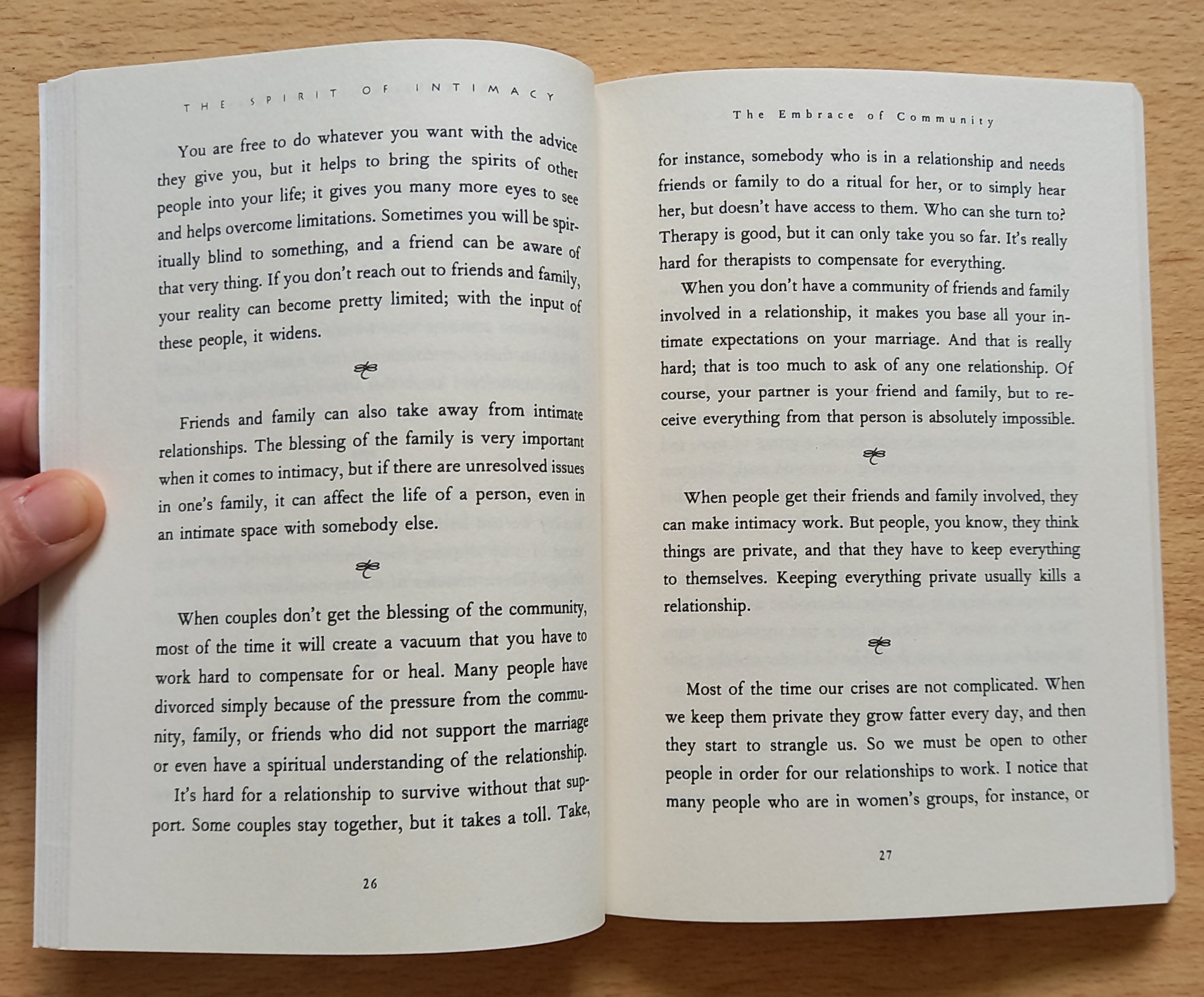 One of the most revelatory (and then immediately, retrospectively obvious) insights from The Spirit of Intimacy is that every relationship (not just romantic ones) has/ is guided by a spirit: